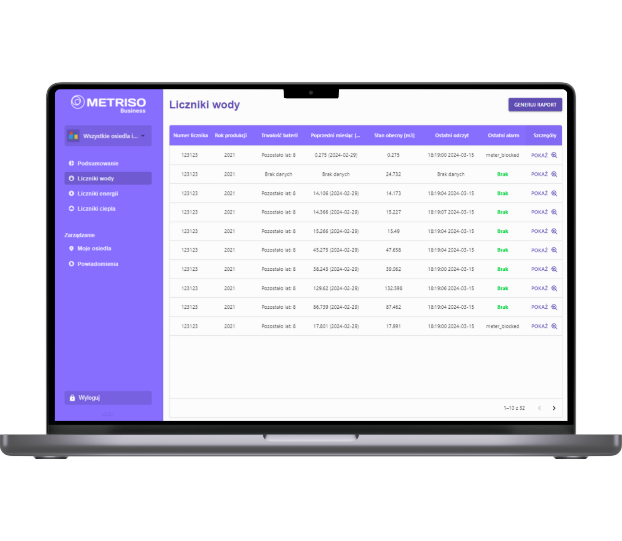 Metriso Business pozwala na błyskawiczny przegląd zużycia z poszczególnych liczników i wygenerowanie raportu. Nie musisz już wysyłać ekip na miejsce, w celu dokonania odczytów. Metriso zrobi to za Ciebie.
