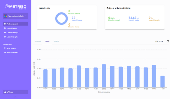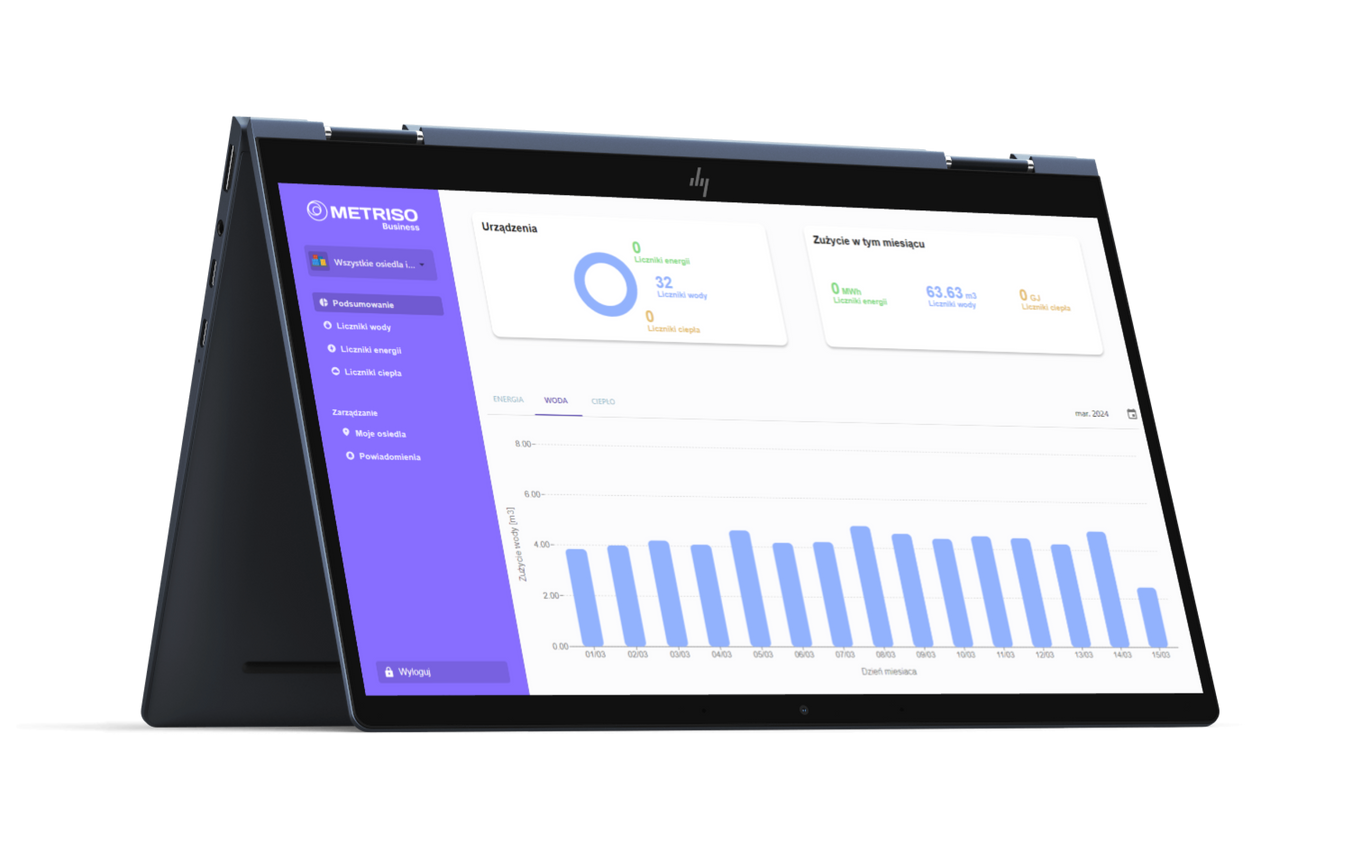 Metriso Business to rozwiązanie dla deweloperów, zarządców osiedli czy właścicieli biur, które umożliwia zdalny odczyt liczników mediów, rozliczenia, wysyłanie komunikatów i odbieranie alarmów o awariach instalacji.